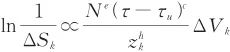 式中△Sk代表單元體積幸存概率,N代表每一轉的應力循環次數,τ代表滾道接觸下的切應力,τu代表材料的疲勞極限切應力,△Vk代表應力作用的單元體積,zk代表應力作用深度,e、c、h代表通過試驗確定的Weibull參數。