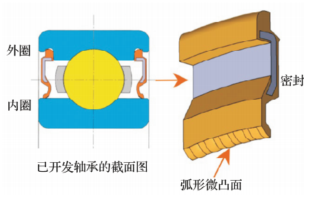 為防止變速器潤滑油中存在硬質(zhì)異物的惡劣環(huán)境導(dǎo)致軸承使用壽命降低,通常采用接觸式密封來提高抵抗異物(如來自齒輪的磨粒)的能力。然而,由于密封的滑動阻力,接觸式密封軸承具有較大的轉(zhuǎn)矩。LE密封優(yōu)化了密封形狀和材料,在保證接觸式密封效果的同時實現(xiàn)低轉(zhuǎn)矩。這種密封成功地降低了轉(zhuǎn)矩,提高了極限線速度。LE密封通過設(shè)置在密封唇滑動區(qū)域的弧形(半圓柱形)微凸面(圖5)的楔形壓力效應(yīng),促進密封唇與內(nèi)圈滑動表面之間形成流體潤滑油膜來實現(xiàn)這些效果(表2、圖6)。